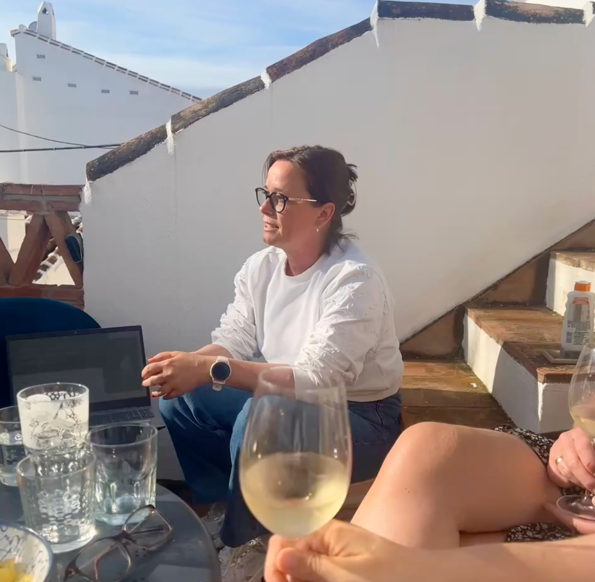 Wat deze week, naar mijn idee, zo bijzonder maakte, was de vrijheid die iedereen voelde om het op haar eigen manier in te vullen. Het ontbijt stond elke ochtend klaar in de huisjes, zodat iedereen op eigen tempo kon starten. De één begon vroeg met een laptop op schoot vanuit de slaapkamer met uitzicht op de bergen, de ander met een wandeling of yoga. De lunchmomenten brachten ons samen: op een dakterras in de zon of aan een lange tafel in La Casitas Secreta vol tapas.